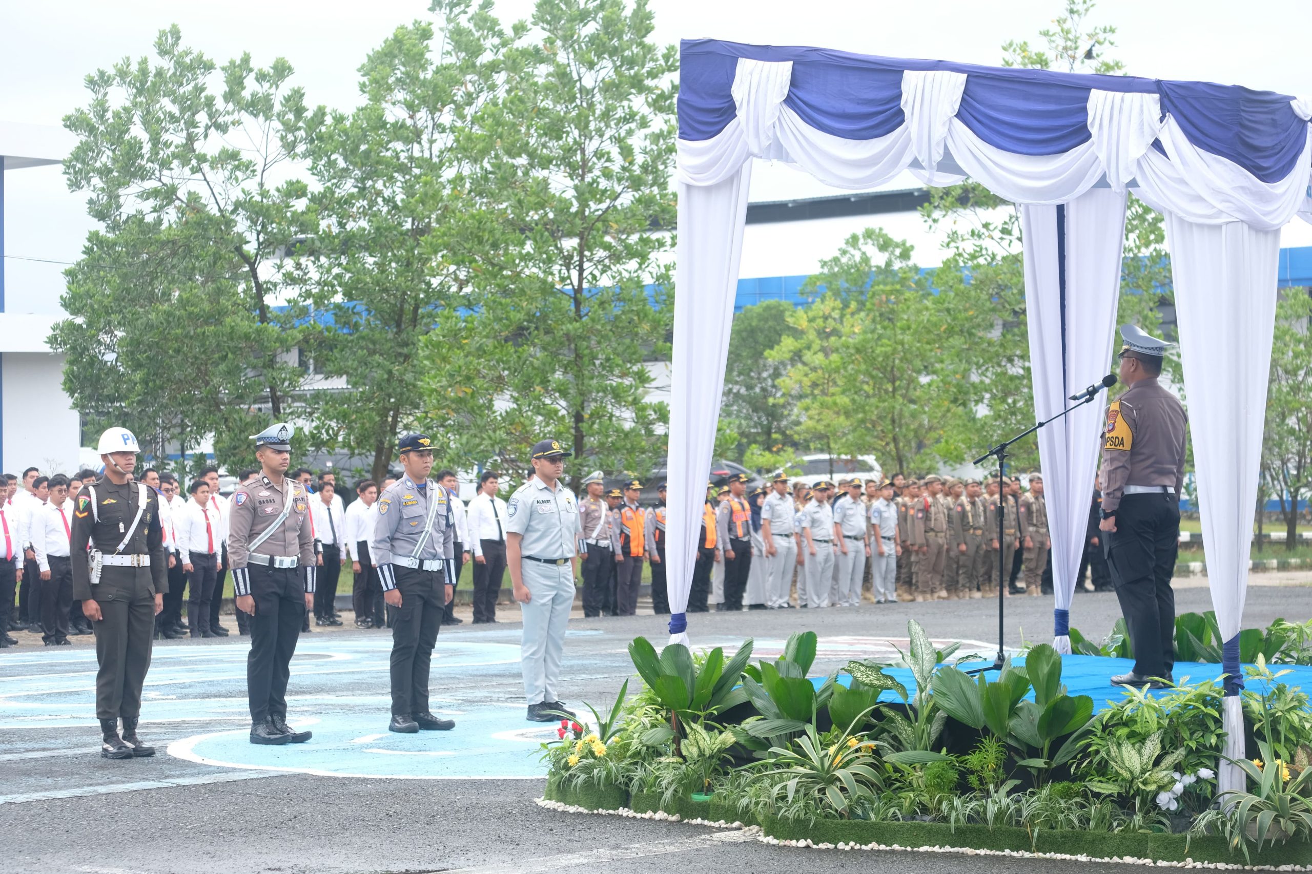 Apel dipimpin langsung oleh Dirlantas Polda Kalsel Kombes Pol Dr. M. Fahri Siregar, S.H., S.I.K., M.H. serta dihadiri oleh Forkopimda Provinsi Kalsel dan para pejabat utama Ditrektorat Lalulintas Polda Kalsel.