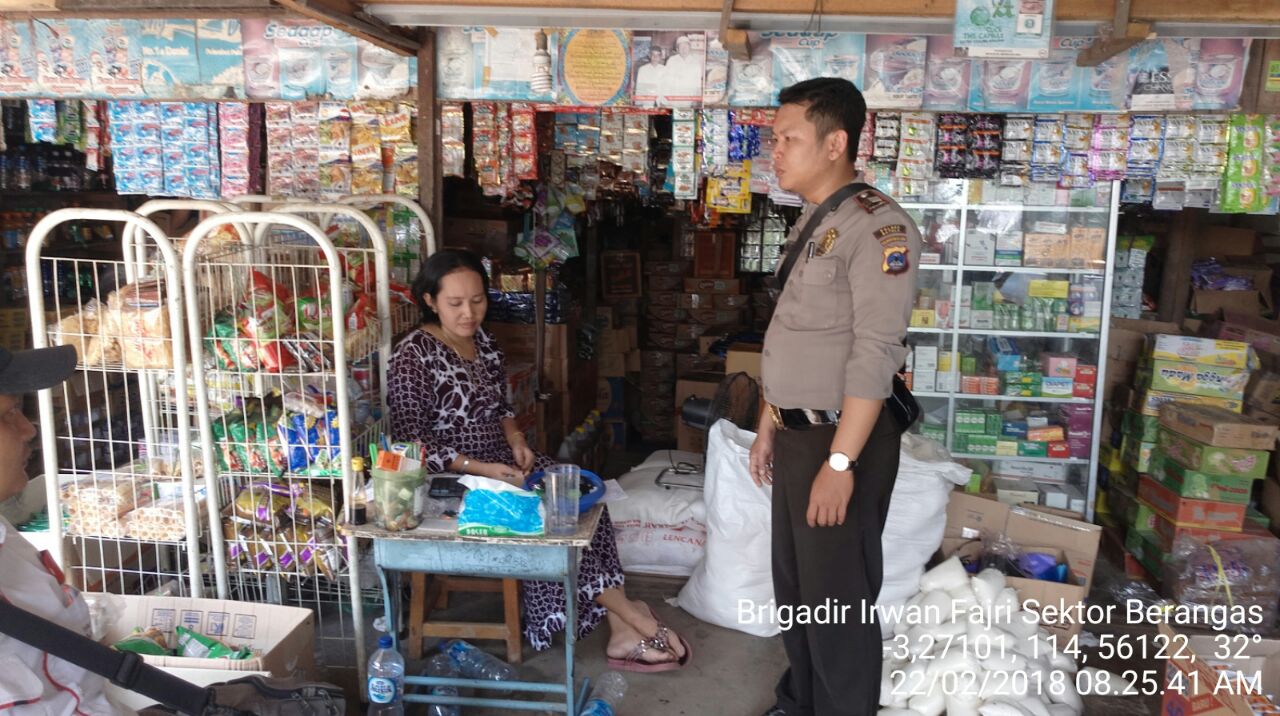 Polsek Berangas melalui Bhabinkamtibmas Desa Sungai Lumbah Brigadir Irwan Fajri melakukan kontrol / pengecekan barang sembako dan memberikan himbauan, Kamis (22/2/2018).