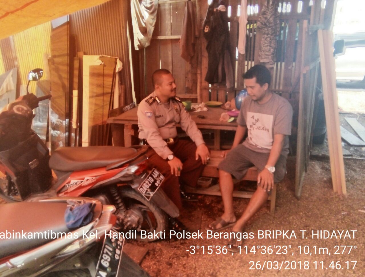 Bhabinkamtibas Bripka T.Hidayat melaksanakan Door to Door System (DDS) bertempat di Jalan Trans Kalimantan Kelurahan Handil Bakti Rt.12 Kecamatan Alalak Kabupaten Barito Kuala, Senin (26/3/2018).